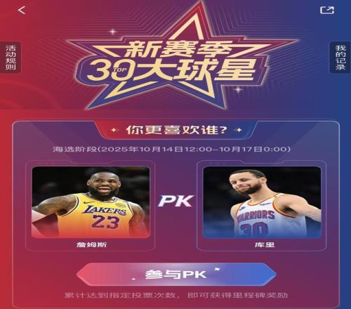 30强排名阶段每位用户可在活动页面中,按照第一选票(5分)、第二选票(3分)、第三选票(1分)来选择自己心目中新赛季最喜爱的球星前三顺位并生成投票结果