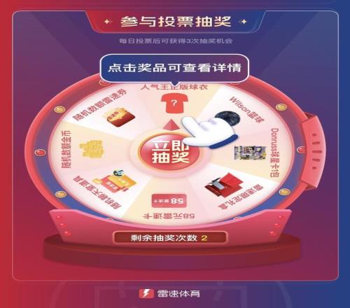 2.本次活动仅用于统计雷速体育用户心目中喜爱、受欢迎的运动员,由此产生的数据及结果仅来自用户的投票及个人选择,且结果不用作任何其他用途;