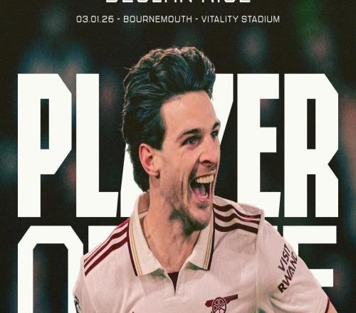 阿森纳官方:赖斯当选为与伯恩茅斯一役队内最佳球员 -